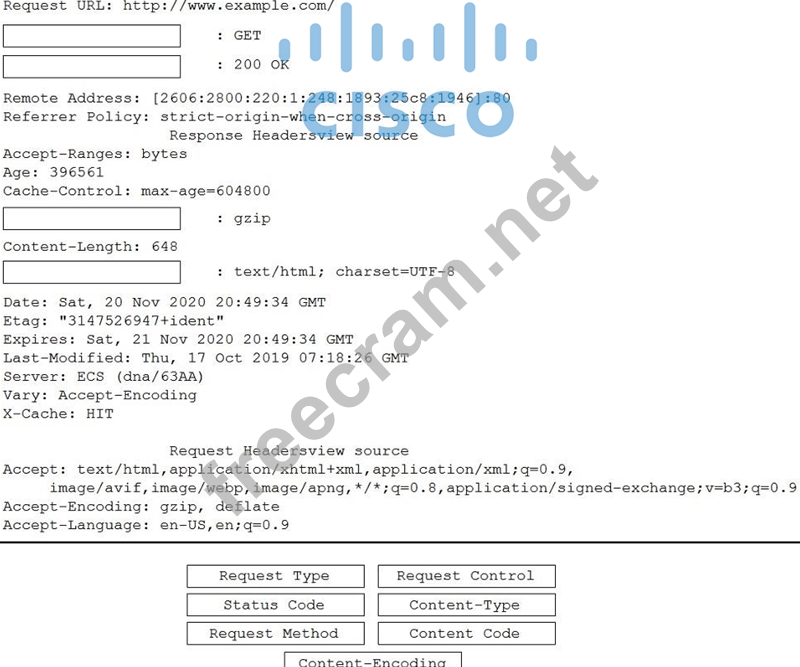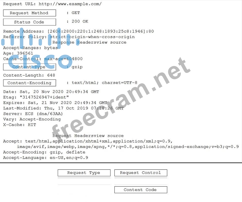 Drag and drop the code snippets from the bottom to the blanks in the code to complete the HTTP response. Not all options are used.