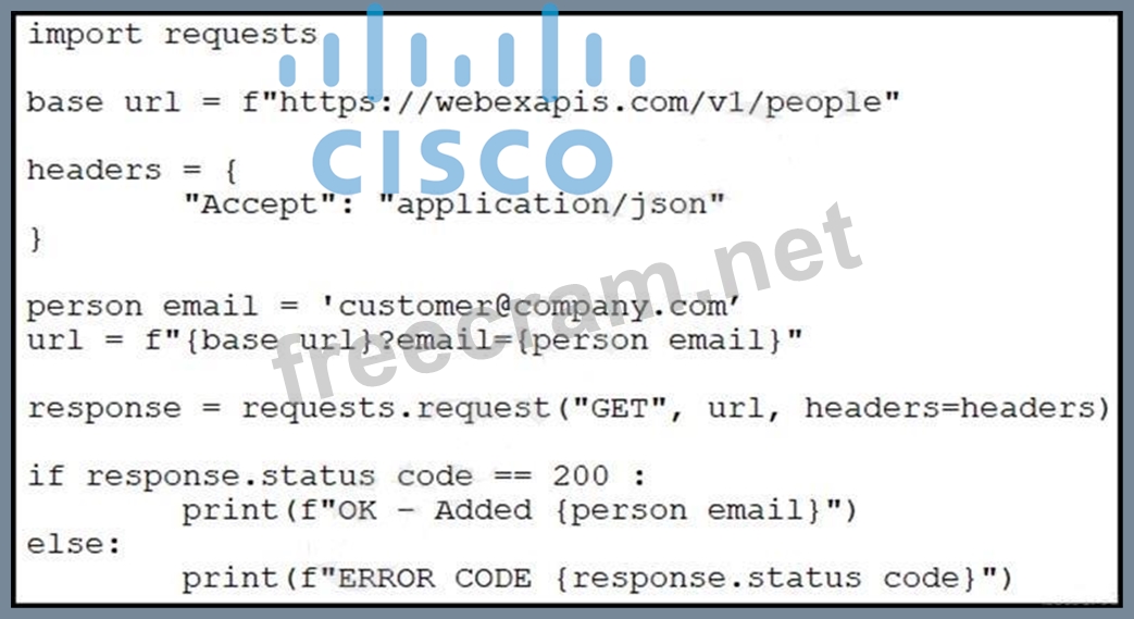 Question 259: Refer to the exhibit. A network engineer wants to use an API...