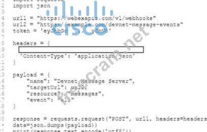 Question 223: Refer to the exhibit. While developing a Cisco Webex bot, an...
