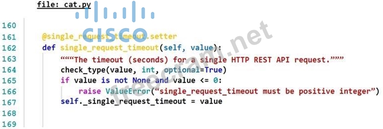 166 - raise ValueError("single_request_timeout must be positive integer") self._single_request_timeout = value