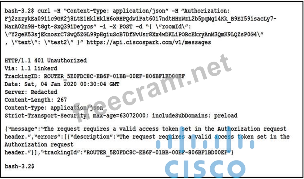Question 223: Refer to the exhibit. While developing a Cisco Webex bot, an...
