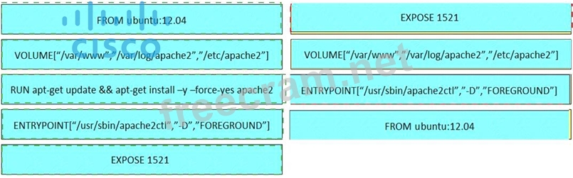 Question 72: (Exhibit) Refer to the exhibit. Drag and drop the Dockerfile...