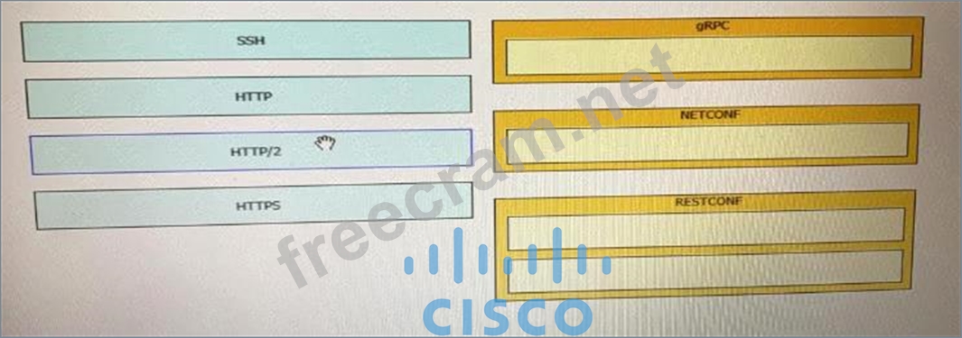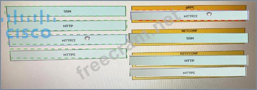 Drag and drop the network automation interfaces from the left onto the transport protocols that they support on the right.