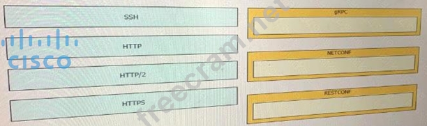 Drag and drop the network automation interfaces from the left onto the transport protocols that they support on the right. (Not all Options are used)