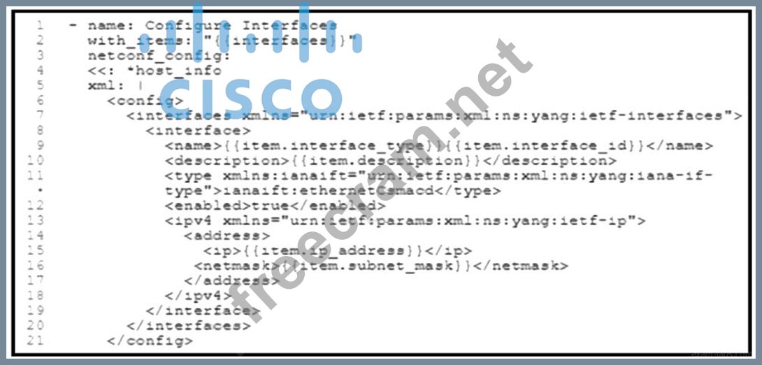 In Ansible, when using the netconf_config module to automate configuration tasks that include unique interface variables for each device, the variables should be defined in individual YAML files within the host_vars directory. This directory contains host-specific variable files named after each host, allowing Ansible to load the appropriate variables for each device during playbook execution. References: * Ansible Documentation - Variable precedence * Cisco DevNet Associate Certification Guide