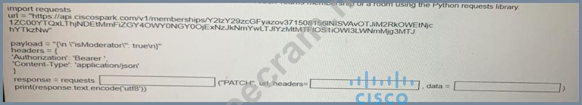 Fill in the blanks to complete the Python script to update the Webex Teams membership of a room using the Python requests library import requests