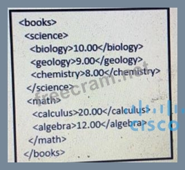 * Leaf Elements: The individual subjects and their prices (e.g., <biology>10.00</biology>) become key-value pairs within their respective parent objects.