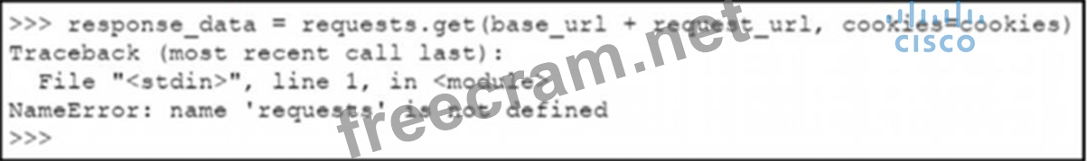 A Python code has been written to query a device. The executed code results in the error shown. Which action resolves the problem?
