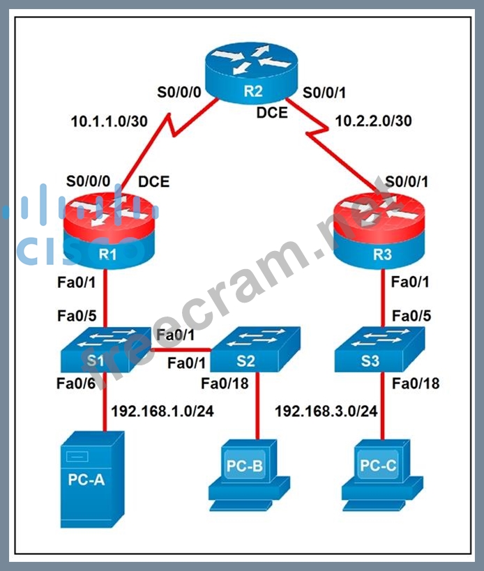 * Statement B: One of the routers has two connected serial interfaces.