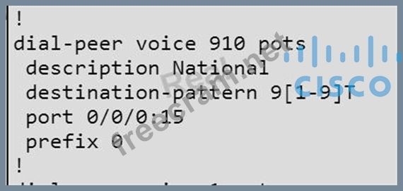 Calls to National numbers are failing. Using the Branch router configuration, correctly determine why these calls are not successful