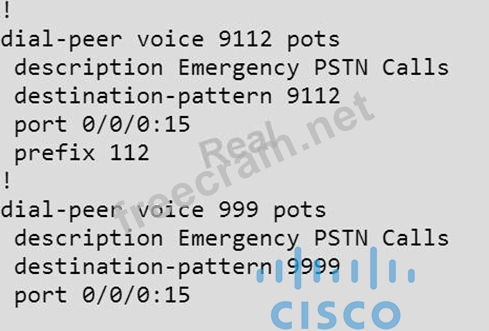 Emergency calls from a Branch router phone is failing. From the router configuration information provided, why is this call failing?
