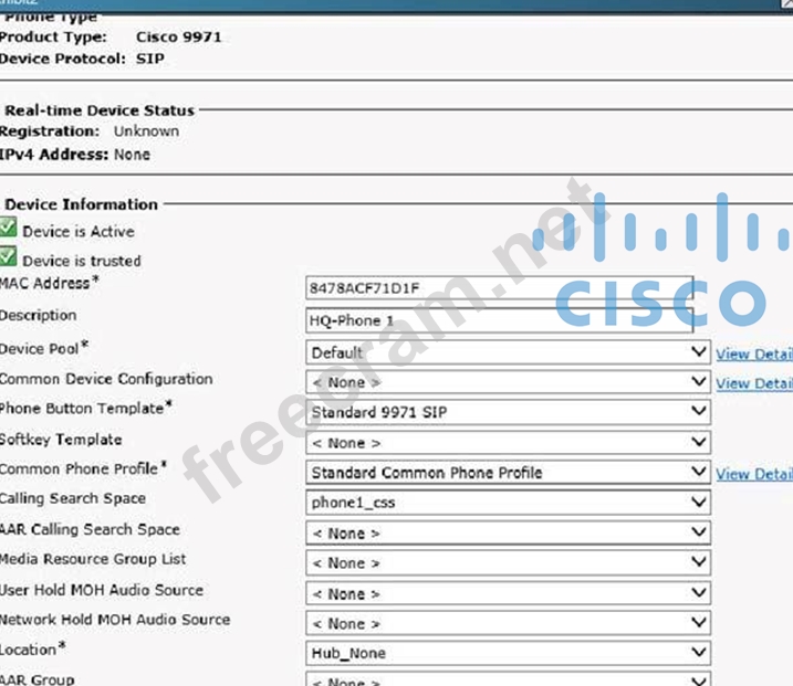 Question 10: Which is added under phone configuration in Cisco Unified Co...