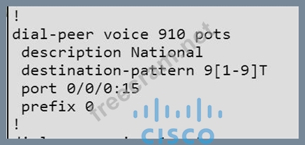 Calls to National numbers are failing. Using the Branch router configuration, correctly determine why these calls are not successful