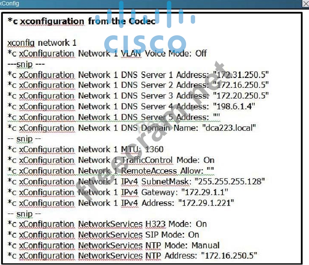 Explanation/Reference: Explanation: The subnet mask configured on the codec is 255.255.255.128, when it should be 255.255.255.0.