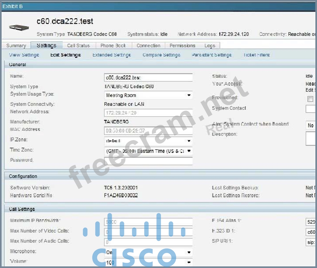 Question 50: A technician has installed and powered on a Cisco TelePresen...