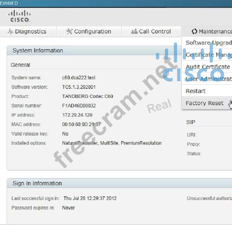 Question 28: Which CLI command can be used to reset the Cisco TelePresenc...