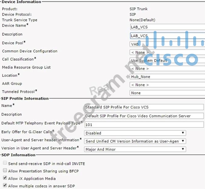 A network engineer configures a Cisco Unified Communications Manager and VCS integration via a SIP trunk. Endpoint A is able to conduct video calls to Endpoint B.