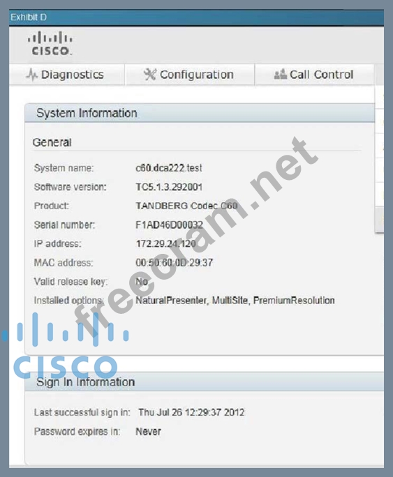 Question 60: An important Cisco TelePresence video multipoint call is in ...