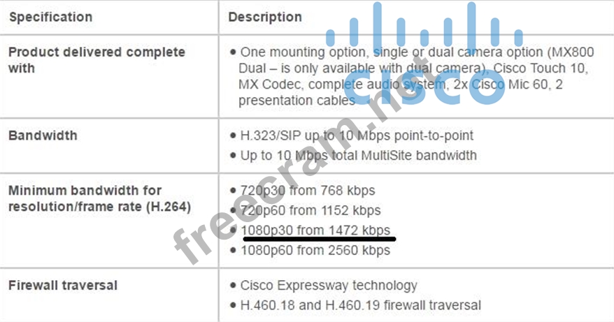 Question 93: In a Cisco TelePresence MX300 G2, what is the minimum bandwi...