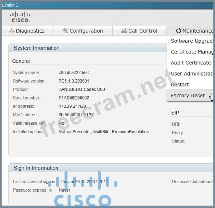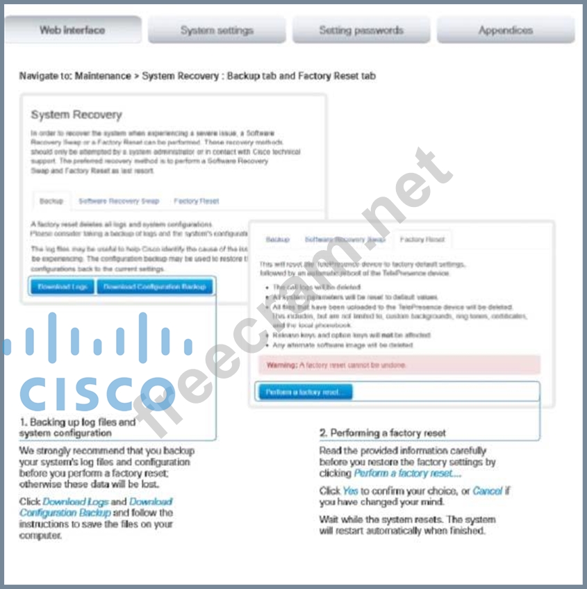 Question 201: Which CLI command can be used to reset the Cisco TelePresenc...