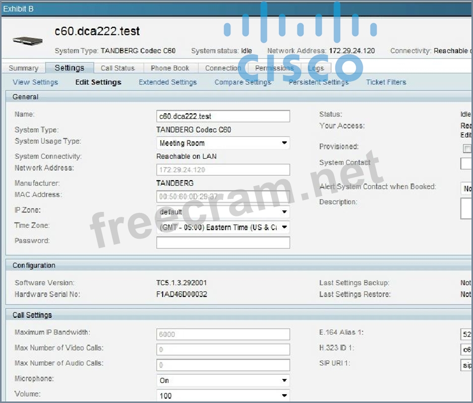 Question 136: A network engineer is installing a Cisco TelePresence MX200 ...