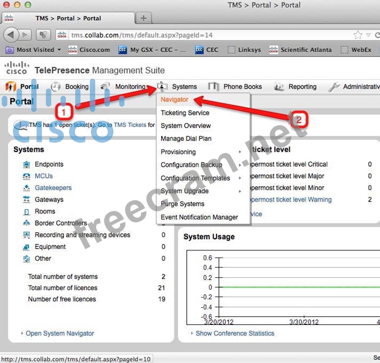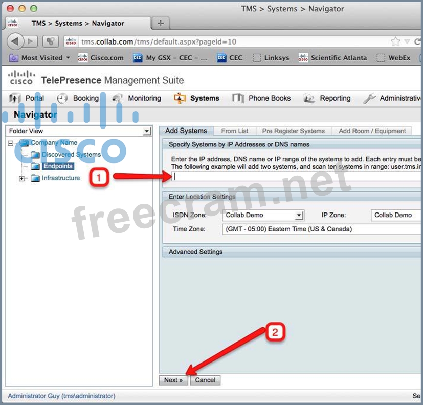 a. On your lab laptop open a web browser and navigate to your Telepresence Management Suite (TMS) instance at: http://tms.collab.com/tms b. Login as