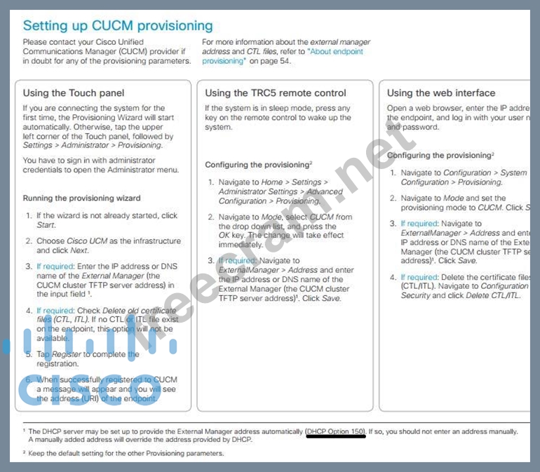 Question 142: Which DHCP option is used by video endpoints to locate the C...