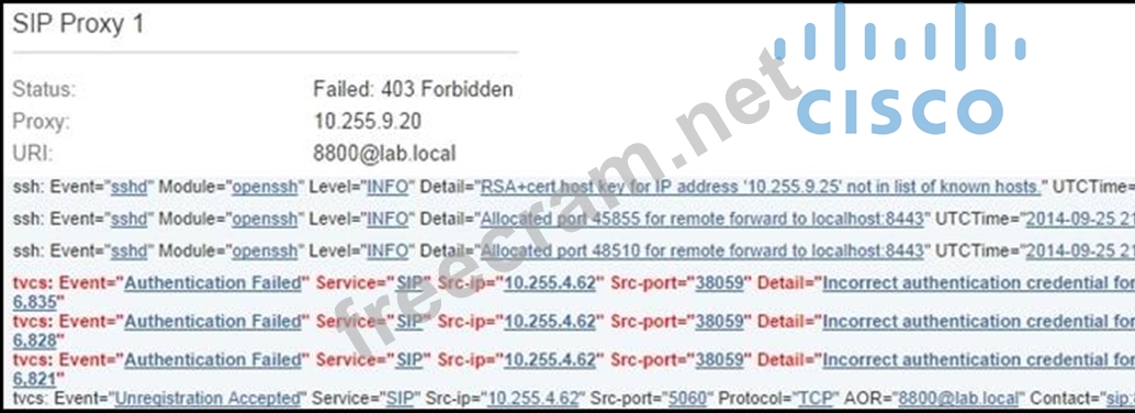 Question 43: While trying to register to Cisco UCM, a Cisco IP phone repo...