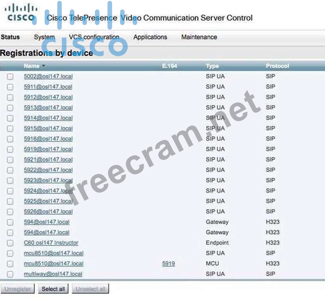 Question 151: A Cisco SX20 is registered to Cisco Unified Communications M...
