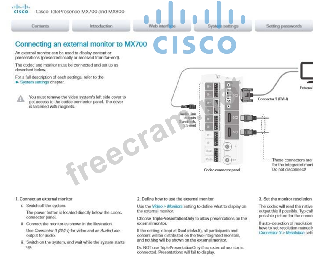 Question 190: An engineer is configuring a Cisco TelePresence MX300 for re...