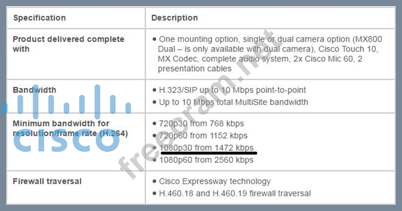 Question 226: In a Cisco TelePresence MX300 G2, what is the minimum bandwi...