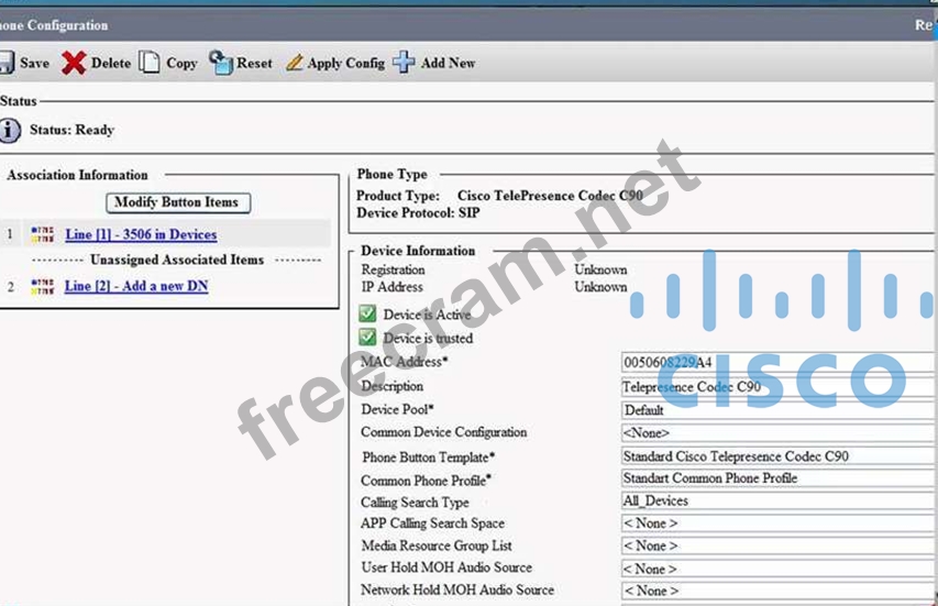 Question 203: A Cisco SX20 is registered to Cisco Unified Communications M...