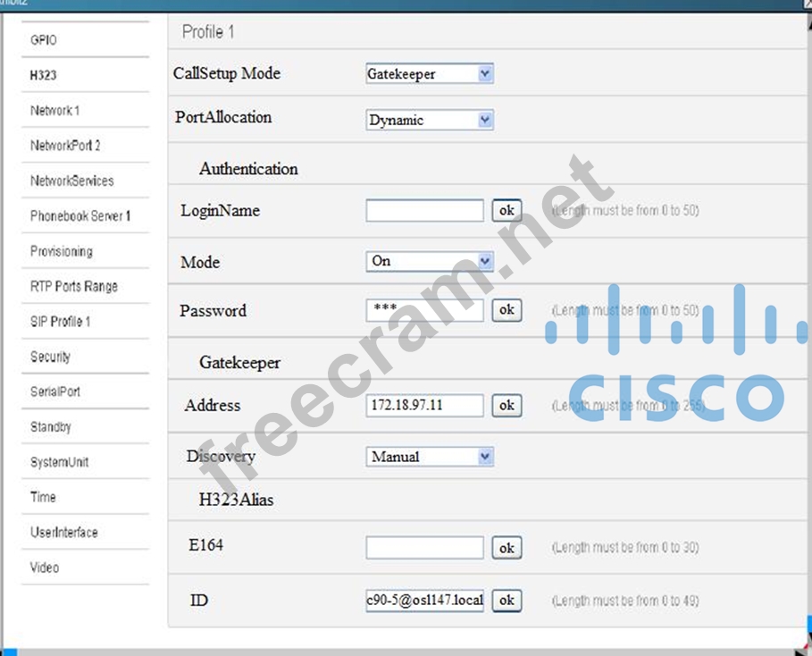 Question 193: Which two fields must be configured for a Cisco TelePresence...