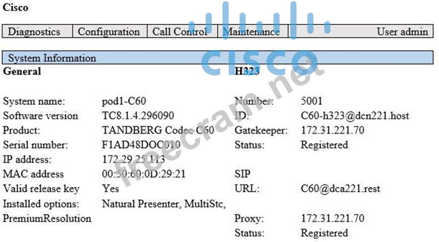 Question 203: A Cisco SX20 is registered to Cisco Unified Communications M...
