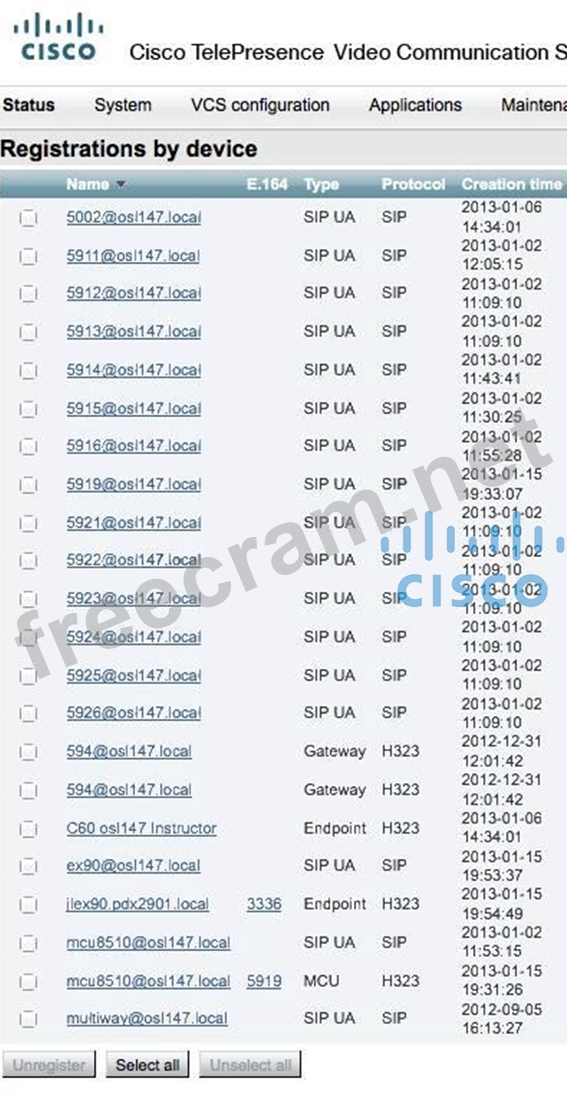 Question 195: A Cisco TelePresence EX90 endpoint is not registering succes...