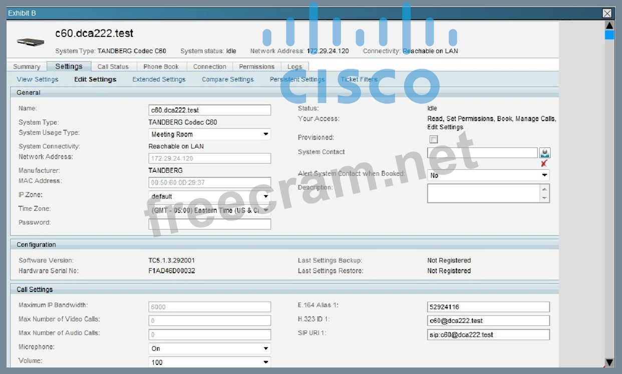 Question 92: An engineer is configuring a Cisco TelePresence MX300 for re...