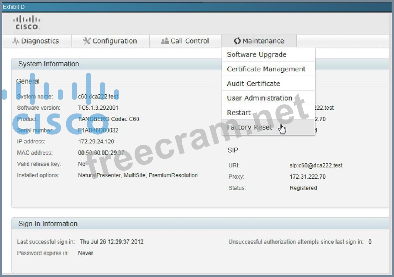 Question 42: (Exhibit) The C-Series endpoint (codec) does not register wi...