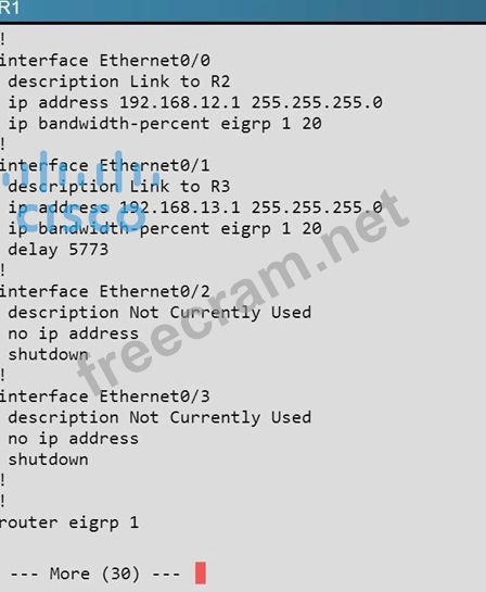 What percent of R1's interfaces bandwidth is EIGRP allowed to use?