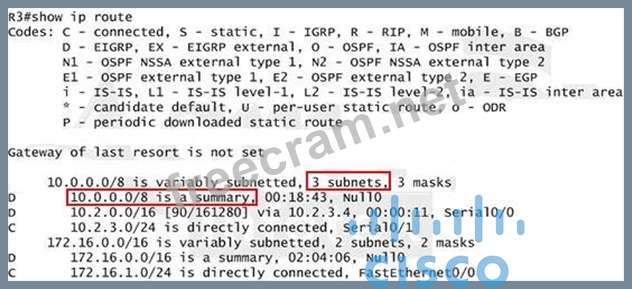 But in your real exam, if you don't see the line "10.0.0.0/8 is a summary, Null0" then you can summarize using the network 10.2.0.0/16. This summarization is better because all the pings can work well.