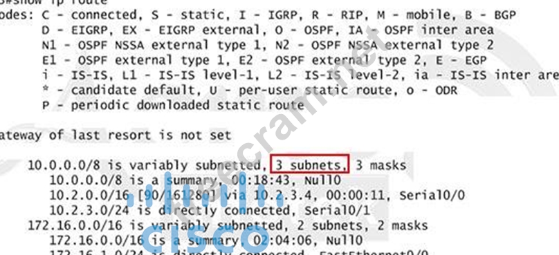 Next we will configure router R3 so that it has only 2 subnets of 10.0.0.0 network. Use the show ip route command on R3 to view its routing table: