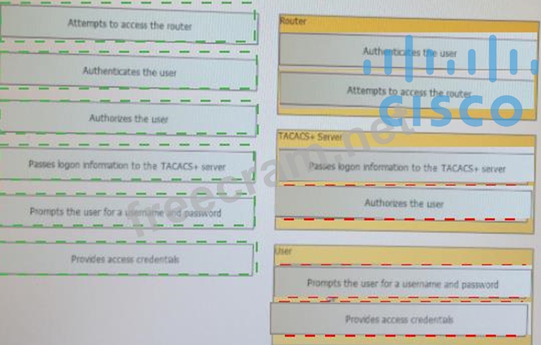 Question 163: DRAG DROP Drag and drop steps in the TACACS+ authentication ...
