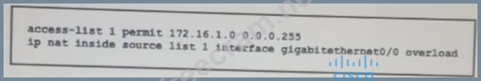 You have correctly identified the inside and outside interfaces in the NAT configuration of this device. Which effect of this configuration is true?