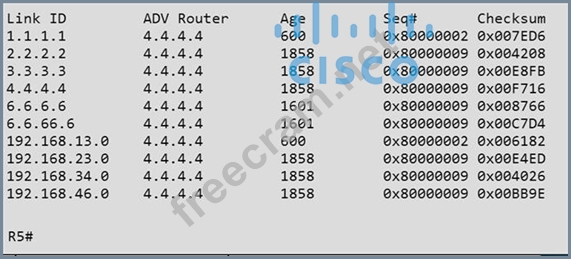 Question 4: (Exhibit) How old is the Type 4 LSA from Router 3 for area 1...