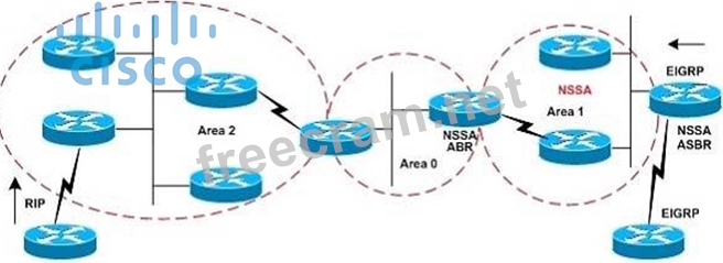 Refer to the exhibit. In the network diagram, Area 1 is defined as a stub area. Because redistribution is not allowed in the stub area, EIGRP routes cannot be propagated into the OSPF domain. How does defining area 1 as a not-so-stubby area (NSSA) make it possible to inject EIGRP routes into the OSPF NSSA domain?