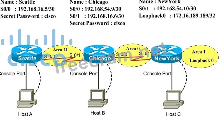 Note: In actual exam, the IP addressing, OSPF areas and process ID, and router hostnames may change, but the overall solution is the same.