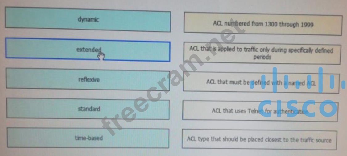 Question 171: DRAG DROP Drag and drop the ACL types from the left onto the...