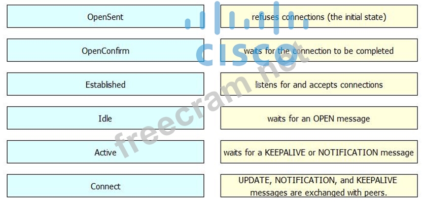 Drag and drop the BGP states from the left to the matching definitions on the right.