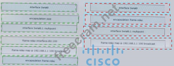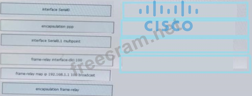 You are configuring the R1 Serial0 interface for a multipoint connection. Drag and drop the required configuration statements from the left onto the corresponding locations from the diagram on the right.