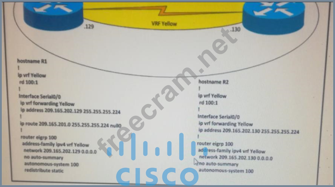 Question 128: A network engineer has set up VRF-Lite on two routers where ...