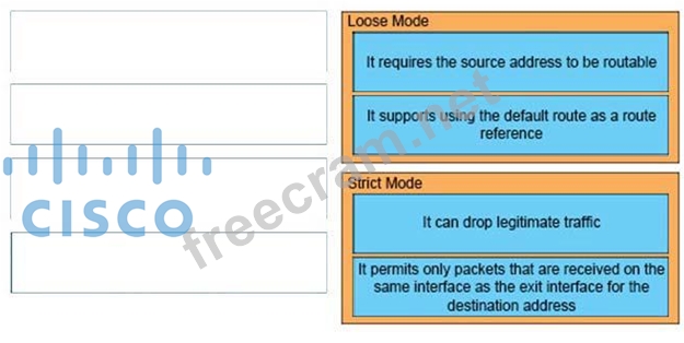 Drag and drop the statements from the left onto the correct uRPF modes on the right.